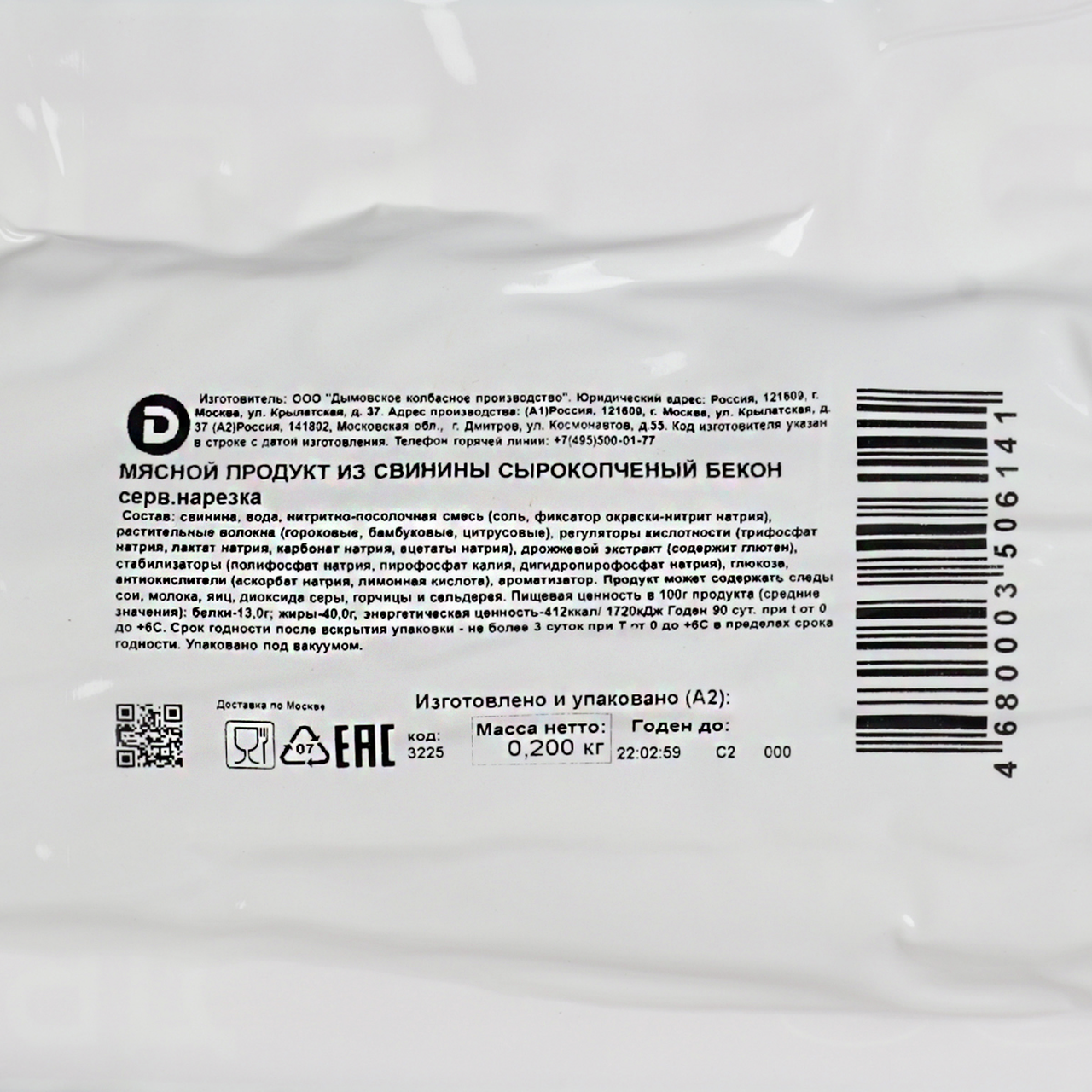 Бекон сырокопченый Венгерский Дымов нарезка, 200 г – удобный формат популярного продукта, который подходит для приготовления различных блюд, от классической яичницы до итальянской пиццы. Бекон изготавливается из отборного мяса молодой свинины. Оно проходит разные стадии обработки, после чего добавляются ароматные специи и пряности для особенно пикантного вкуса. Продукт продается в вакуумных пакетах и уже нарезан тонкими ломтиками, которые можно сразу использовать для приготовления блюд.