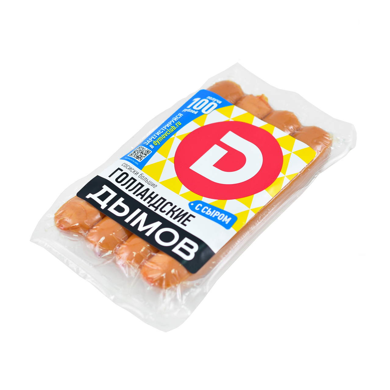 Сосиски ДЫМОВ Голландские с сыром, 340 г – это вкусное мясное изделие с ароматом копчения и добавлением кусочков сыра. Продукт изготовлен из свинины, куриного филе и говядины. Сосиски могут отлично дополнить ужин или стать основным элементом завтрака. Они обладают однородной структурой и нежным мясным вкусом. Продукт идеально подойдет для приготовления пиццы, хот-догов, салатов и т.д.ДЫМОВ – это известный россий��кий бренд, под которым выпускается большое количество мясных изделий. Он основан в 2001 году. Компания имеет широкий ассортимент продукции, в который входят: колбасы, сосиски, пельмени, мясные снеки и т.д. Приобрести сосиски ДЫМОВ Голландские с сыром, 340 г можно в торговом центре METRO.Тип товара: сосиски.Бренд: ДЫМОВ.Страна: Россия.Производитель: ООО Дымовское колбасное производство.Фасовка: порционные.Сырье: микс.Вес: 340 г.Тип колбасы: с сыром.Вид колбасы: голландские.Состав: свинина, вода питьевая, филе кур, говядина, сыр плавленый Карат (масло сливочное, творог, молоко сухое обезжиренное, сухая молочная сыворотка, эмульгаторы (полифосфат, ортофосфат , полифосфат натрия), стабилизаторы (крахмал, фосфат кальция), загуститель (гуаровая камедь), стабилизаторы (пирофосфат натрия, цитрат натрия), декстроза, специи (перец черный молотый, паприка), антиокислитель (изоаскорбат натрия), животный белок (говяжий), загуститель (альгинат натрия), нитритно-посолочная смесь (соль пищевая, фиксатор окраски (нитрит натрия)), молоко сухое коровье, ароматизаторы, усилитель вкуса (дрожжевые экстракты), сахар, красители (кармин, пищевой рис ферментированный красный). Может содержать следы сои, горчицы, злаков, грецких орехов, яиц, сельдерея и продуктов их переработки.Энергетическая ценность на 100 г: 228 ккал/955 кДж.Пищевая ценность: белки – 12 г, жиры – 20 г, углеводы – 0 г.Срок годности: 31 день.Условия хранения: хранить при температуре от 0С до +6С.Тип упаковки: вакуумная упаковка.