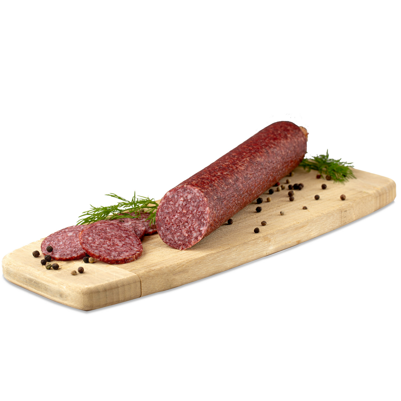 Колбаса Дымов Вкусный праздник сырокопченая, ~550г подойдет к различным напиткам. Она сочетается со свежим или поджаренным хлебом, оливками, маринованными огурчиками, вяленными томатами, овощами, разнообразными соусами. Ее можно использовать для приготовления канапе, брускетт или подавать в составе мясной тарелки. Продукт выступит в качестве отличного дополнения к праздничному столу. Он демонстрирует пикантный, в меру соленый вкус, легкий аромат копчения. Для изготовления этого мясного иделия используют отборные ингредиенты. В итоге получается колбаса, которая легко нарезается на тонкие слайсы, образуя красивый срез. Приобрести колбасу Дымов Вкусный праздник сырокопченая, ~550г можно в торговом центре METRO.Дымов – производитель колбас и мясных деликатесов. Компания появилась на рынке в июле 2001 года. В ассортимент выпускаемой продукции входят более 300 различных наименований, к которым относятся: разные виды колбас, сосиски, сардельки, ветчины и деликатесы. Стратегия предприятия ориентирована на потребителя, находящегося в среднем сегменте, а также для тех, кто ищет разнообразие и уникальность вкусов. К отличительным особенностям относятся: использование инновационных технологий, современного оборудования и соответствие стандартам качества.