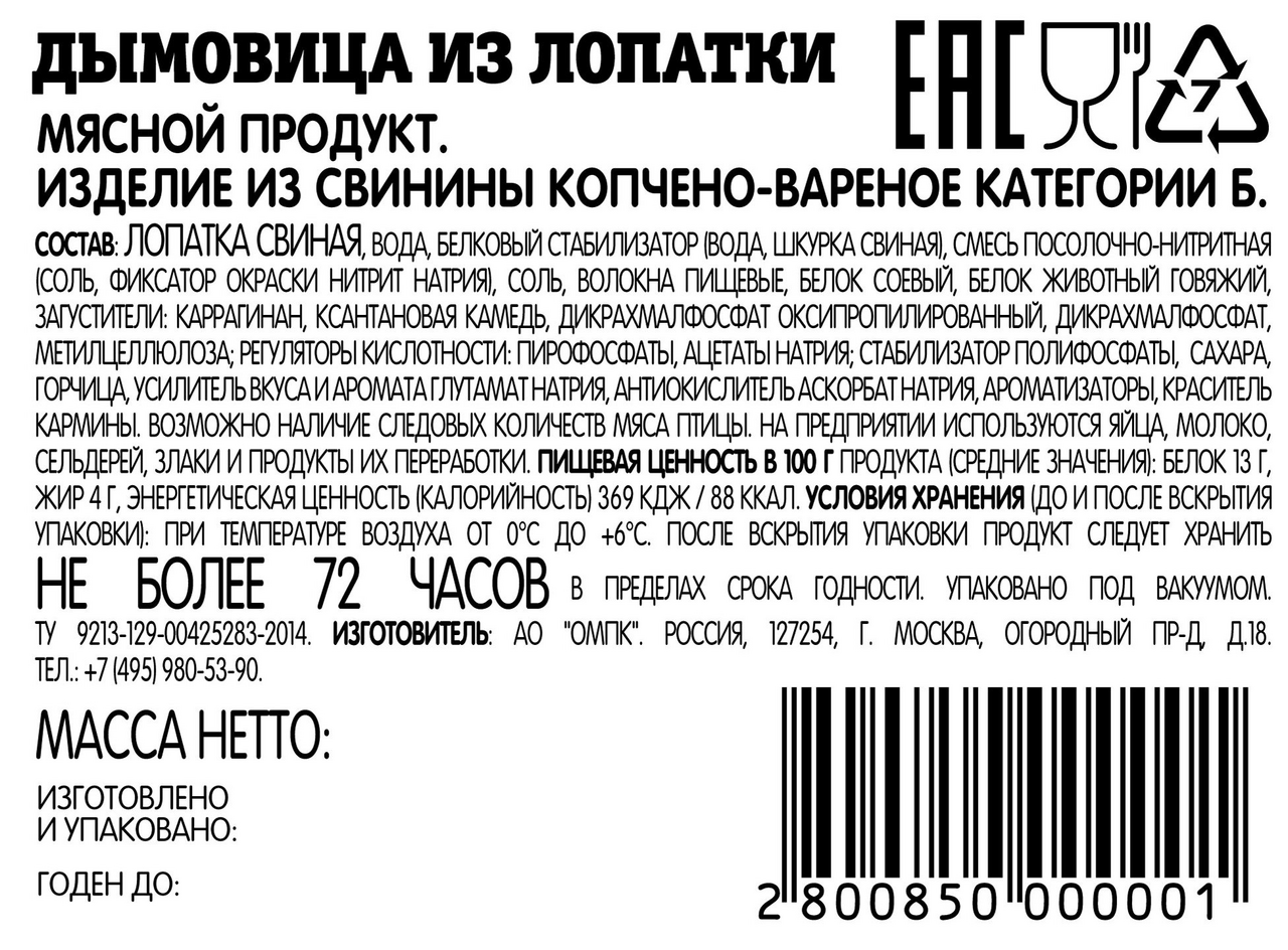 Дымовица свиная Папа Может из лопатки варено-копченая, ~1.45кг