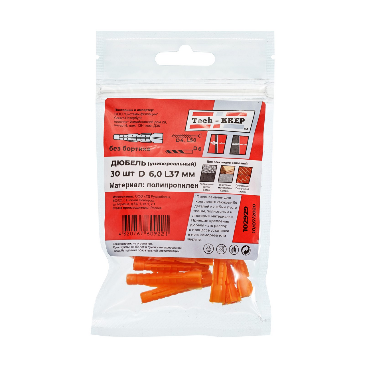 Дюбель TECH-KREP 30шт, 6x37см