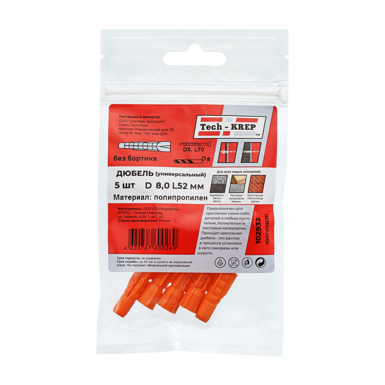 Дюбель TECH-KREP 5шт, 4x52см