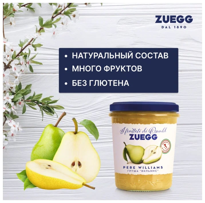Вы открываете баночку золотистого конфитюра, и по кухне сразу разносится тонкий грушевый аромат. Хочется закрыть глаза и сделать глубокий вдох. Запах сочный, сладкий, с медовыми нотками. Воображение рисует бескрайний сад на юге Италии, где раскидистые деревья усеяны тяжелыми, гладкими фруктами, теплыми от щедрых солнечных лучей. Попробуйте грушевый джем Zuegg (Цуегг) с вашими любимыми десертами или как сладкое дополнение к утренней молочной каше.