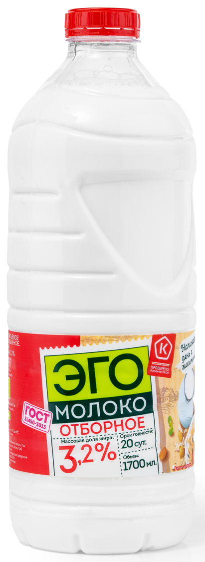 Молоко Эго Отборное пастеризованное 3.2%, 1.7л