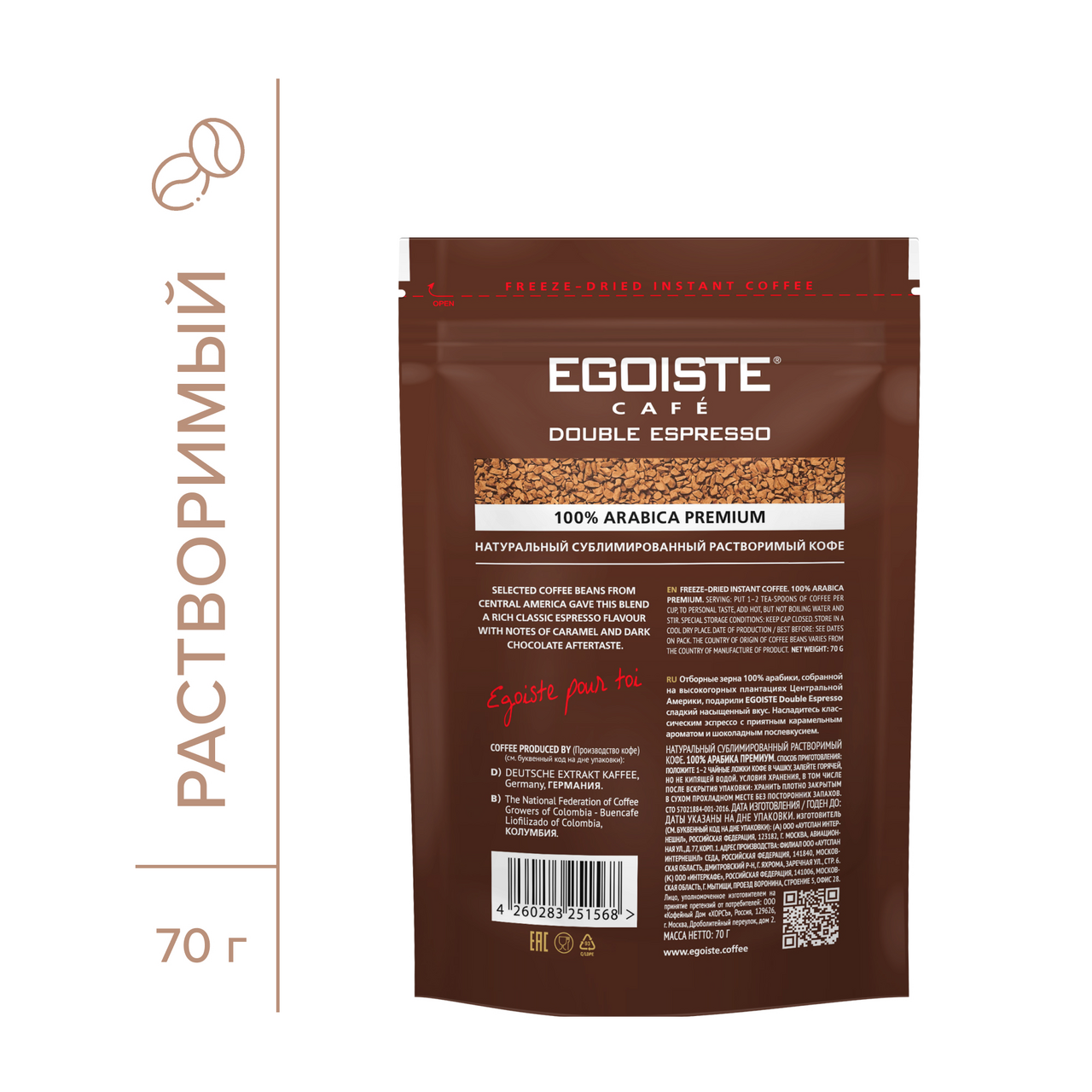 Кофе Egoiste Double Espresso растворимый, 70г
