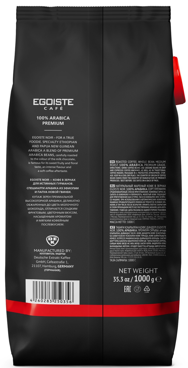 Кофе Egoiste Noir Arabica натуральный жареный в зернах, 1кг