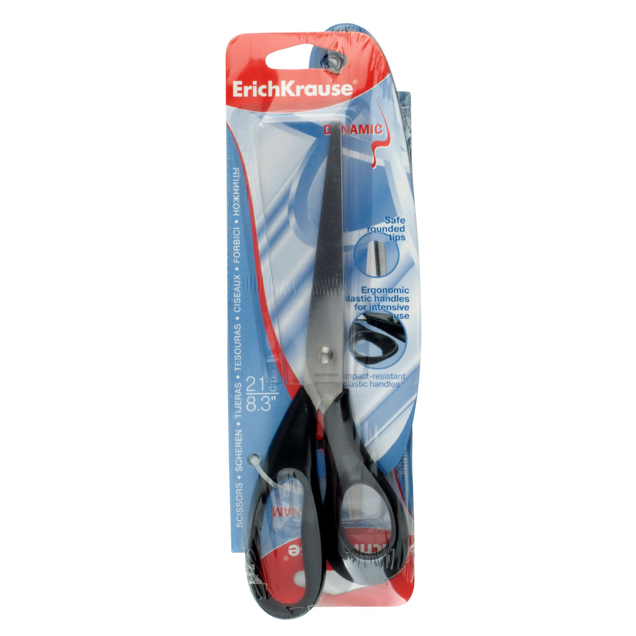 Ножницы Erich Krause ''Dynamic''. Ассиметричные. Острые, прочные лезвия. Длина 21 см. Цвета в ассортименте; доставлен будет цвет, который есть в наличии.