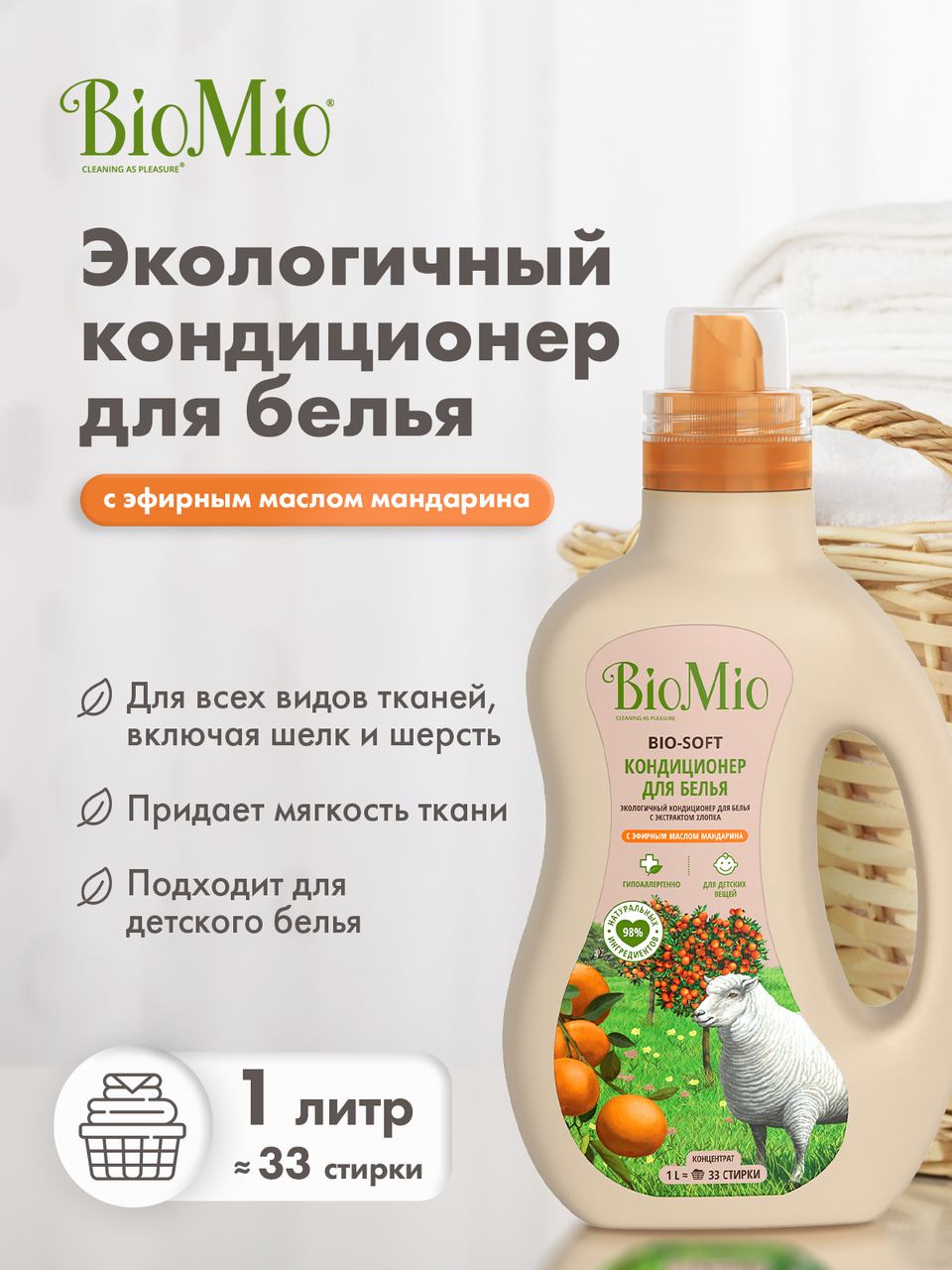 Кондиционер для белья BioMio Мандарин экологичный концентрат, 1л