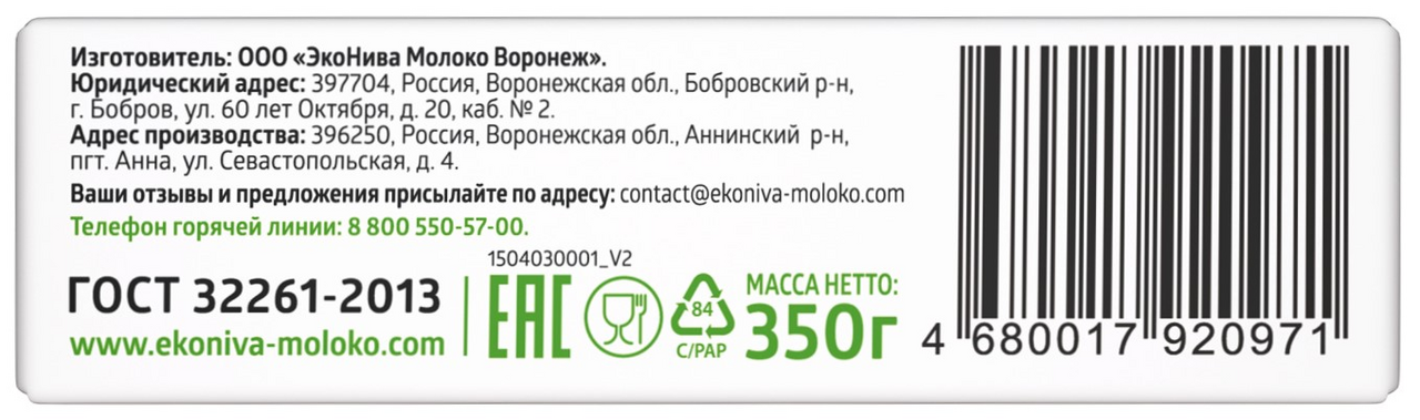 Масло сливочное Эконива Халяль 82.5%, 350г