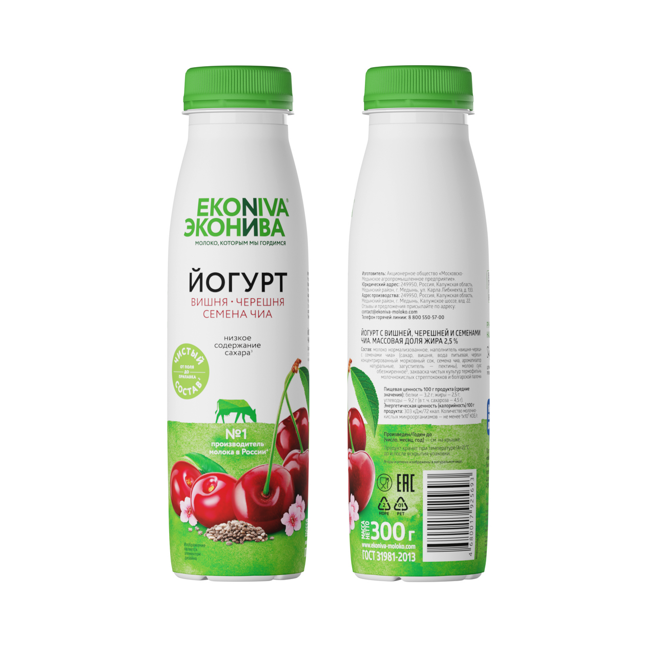 Йогурт питьевой Эконива с вишней, черешней и семенами чиа 2.5%, 300г