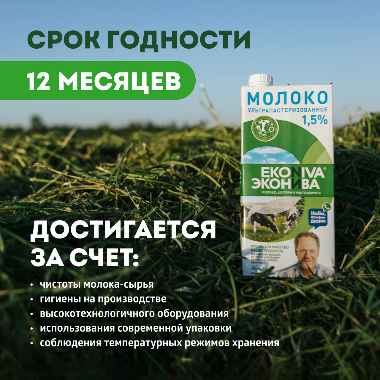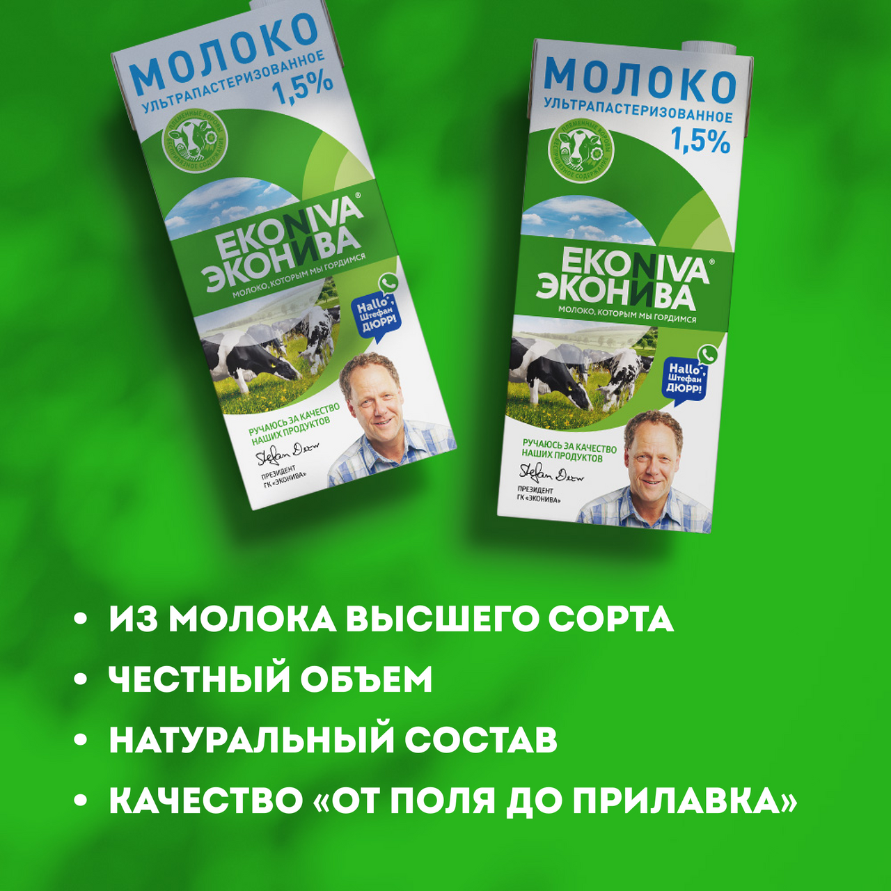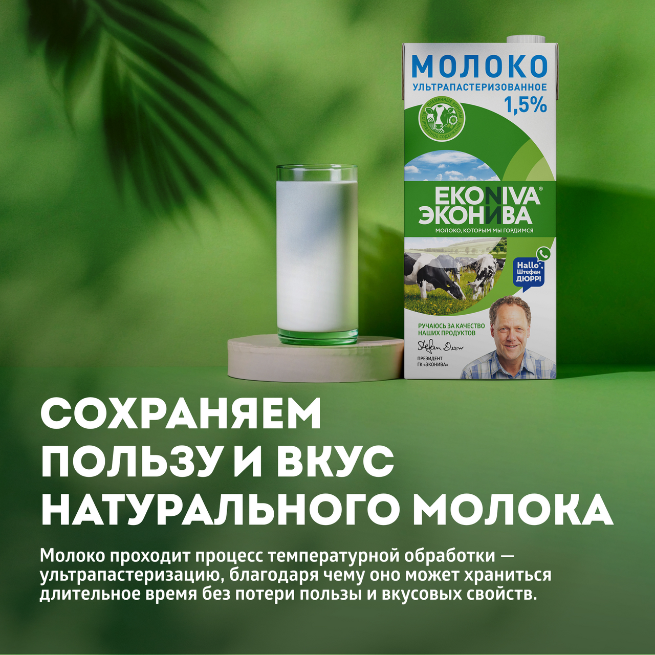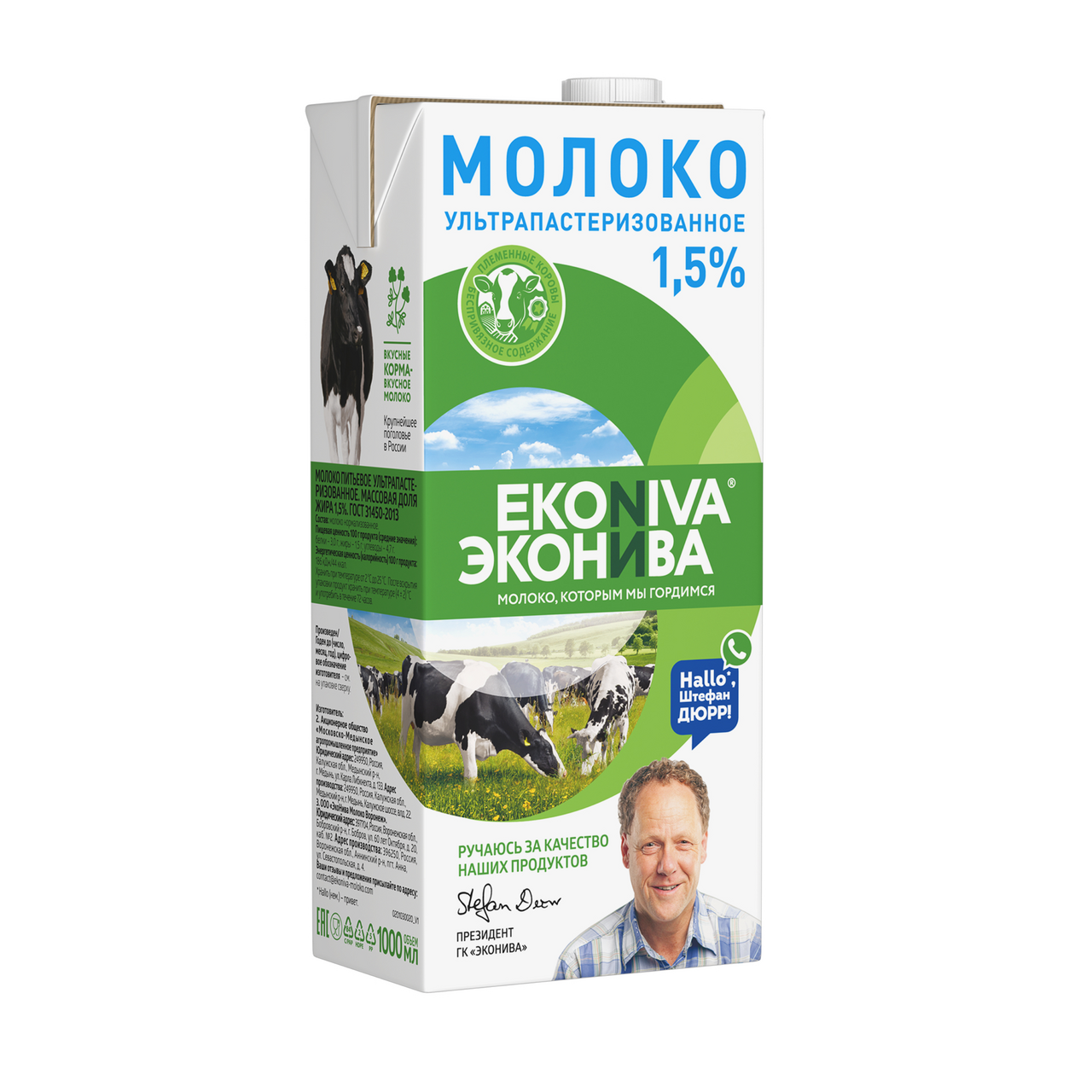 Ультрапастеризованное молоко ЭкоНива 1,5 % изготавливается из молока высшего сорта с наших собственных ферм. Продукт проходит процесс обработки температурой свыше 100 C — ультрапастеризацию, благодаря чему в нём уничтожаются вредные микроорганизмы. Так, напиток может храниться длительное время без потери пользы и вкусовых свойств. Ультрапастеризованное молоко остаётся свежим длительное время в закр��той упаковке даже без холодильника при температуре до +25 C.Такое молоко прекрасным образом подойдёт для создания любимых блюд, маринадов и соусов. А также приятно удивит своей органолептикой ценителей вкусного кофе.