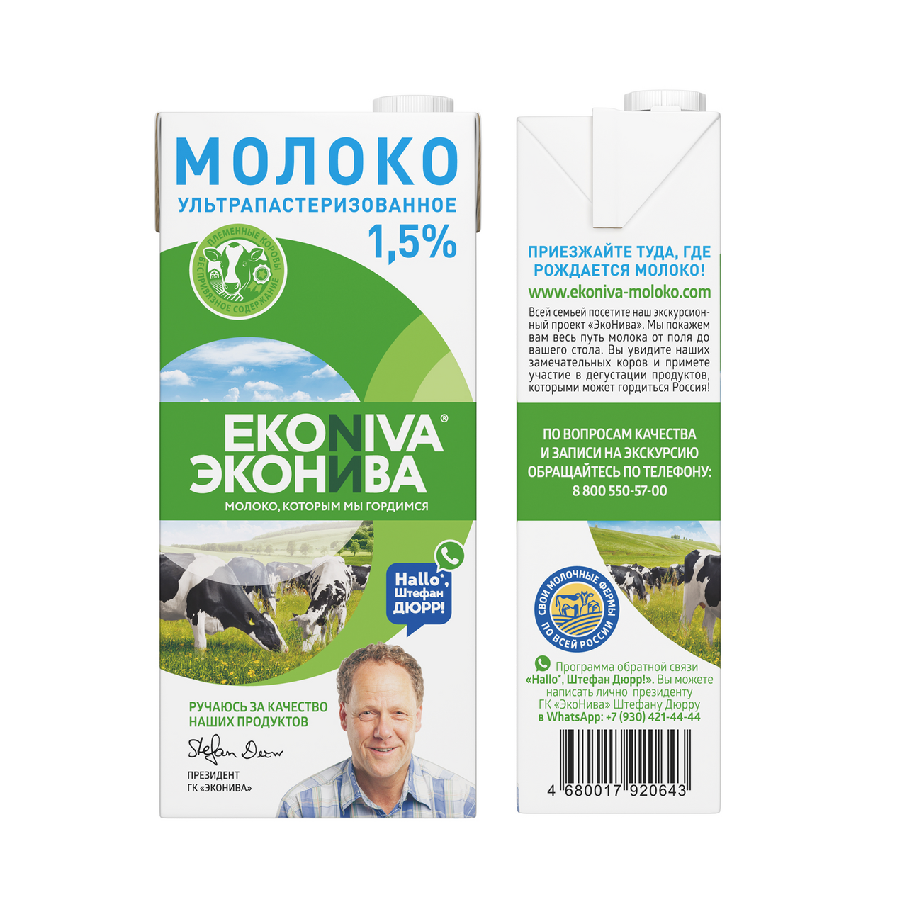 Молоко Эконива ультрапастеризованное 1.5%, 1л