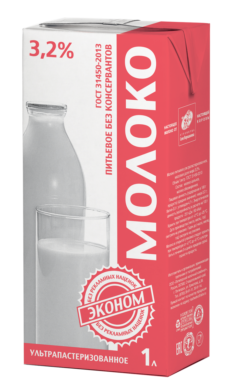 Молоко Эконом ультрапастеризованное 3.2%, 1л х 720 шт