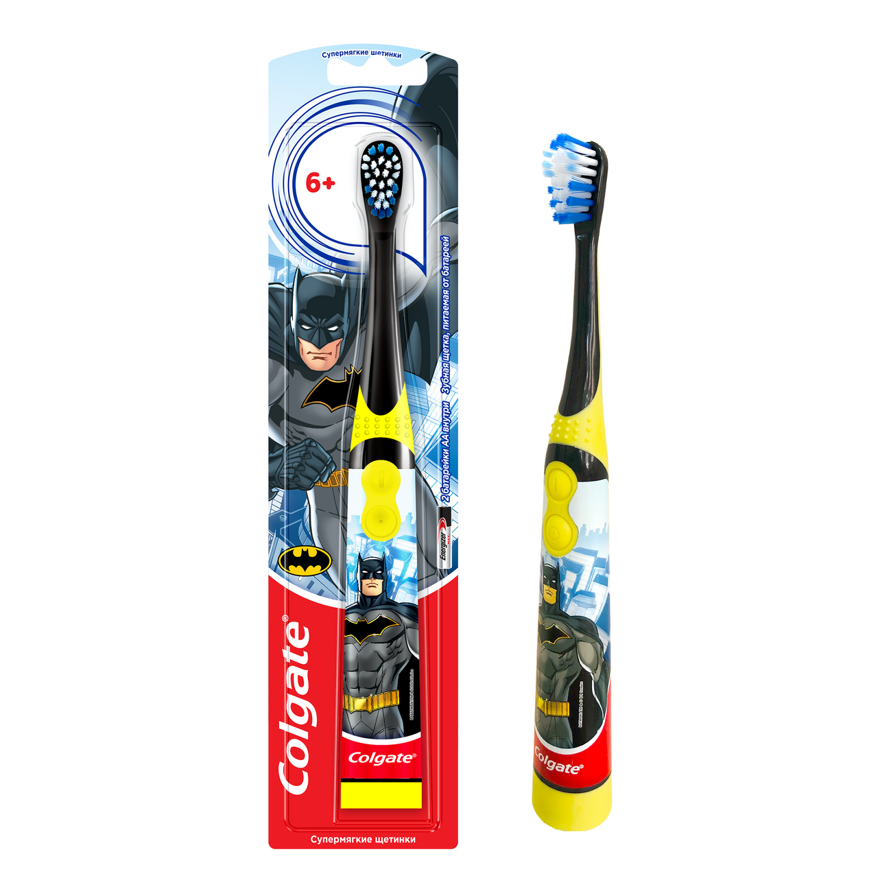 Зубная щетка электрическая детская COLGATE Barbie/Batman для детей, которые учатся правильно чистить зубы. Маленькая овальная головка. Супермягкие щетинки с закругленными кончиками обеспечат бережную чистку молочных зубов. Предназначена для детей от 2 до 5 лет. Прибор работает от 2 батареек 1.5 В типа ААА.