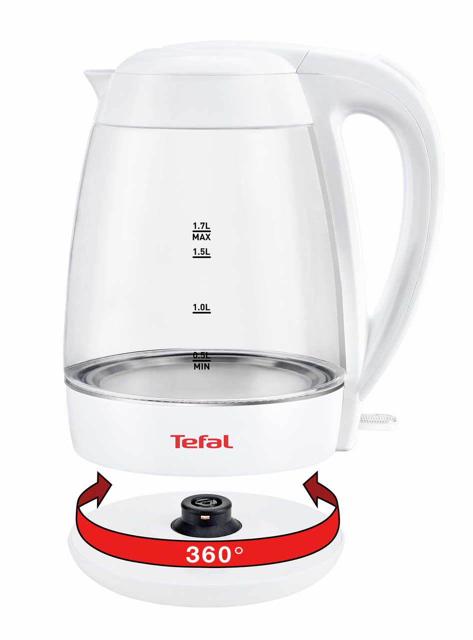 Электрический чайник Tefal KO450132 – незаменимый предмет дома и в офисе. Вода в нем закипает за 3-5 минут, а объема 1,7 литра хватит на 6-7 чашек кофе или чая. На поверхность колбы нанесена шкала, помогающая оценить объем воды. В конструкции предусмотрена откидная крышка с пружиной. Ее механизм срабатывает при нажатии кнопки, расположенной на ручке. Удобное размещение функциональных элементов обеспечивает комфортную эксплуатацию чайника одной рукой. Особенность данной модели – круглое основание с контактом, за счет которого она поворачивается на 360 градусов. Это предотвращает попадание пара на мебель, плиту, другие бытовые приборы. Чайник выдержан в стильном современном дизайне и отличается универсальным цветом, за счет чего органично впишется в различные и��терьеры. Надежность, практичность и долговечность электрочайника обеспечивают нагревательный элемент и автотермостат, препятствующий перегреву.
