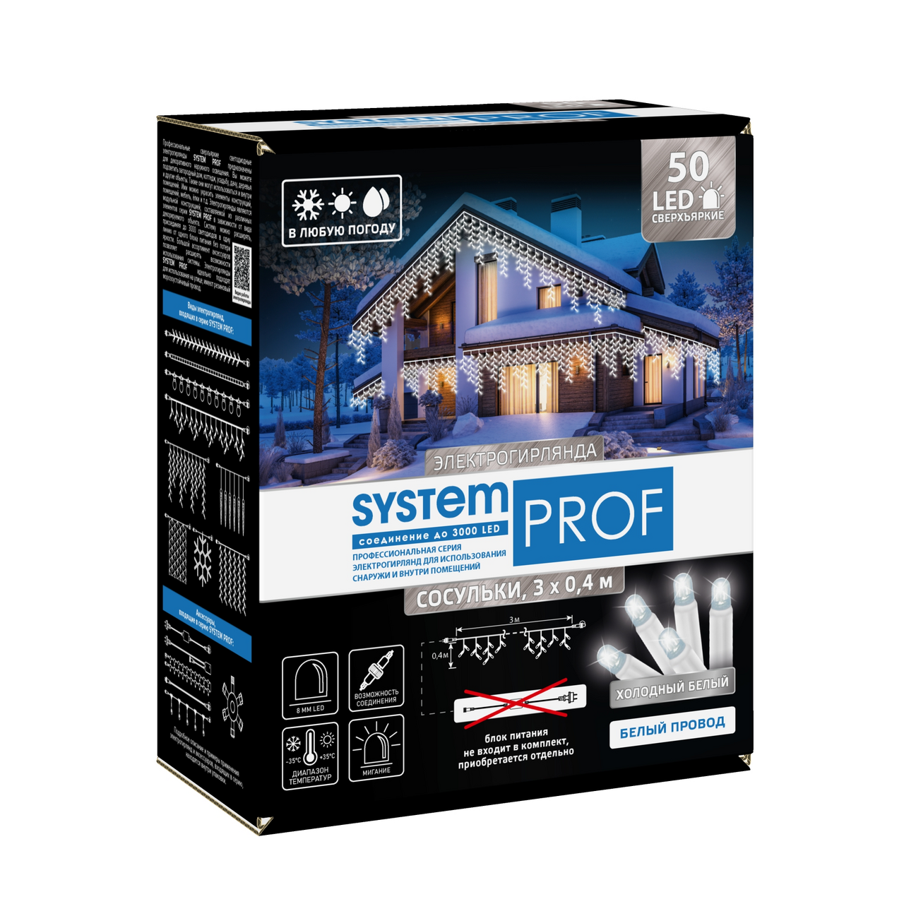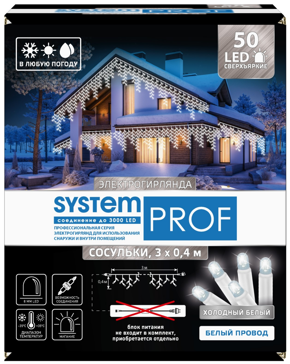 Электрогирлянда сосульки Glos System Prof 50Led холодный белый, 3 x 0.4м