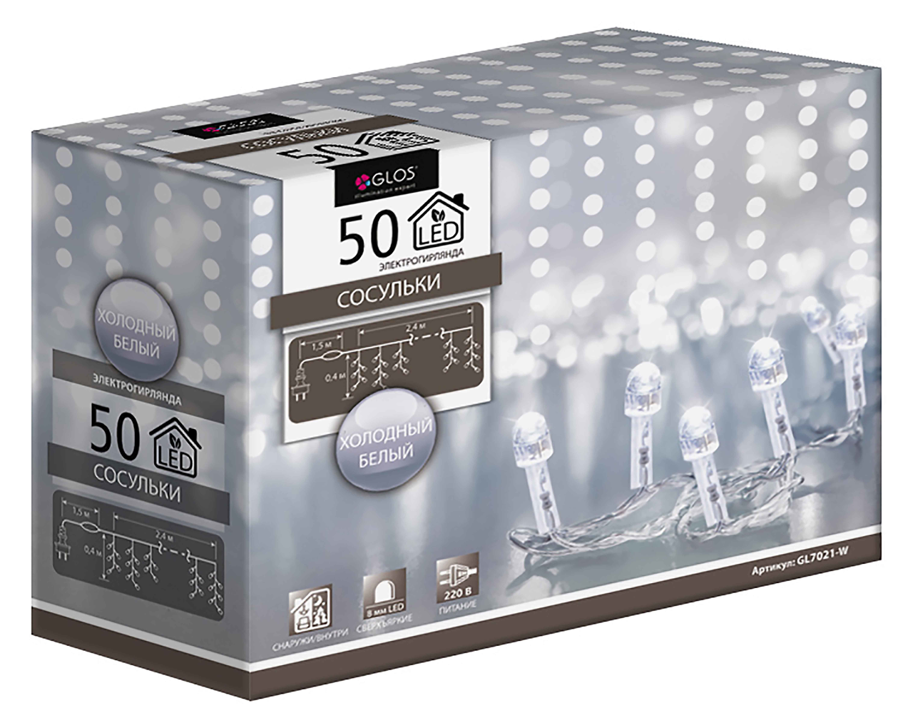 Электрогирлянда сосульки Glos 50Led холодный белый, 2.4 х 0.4м