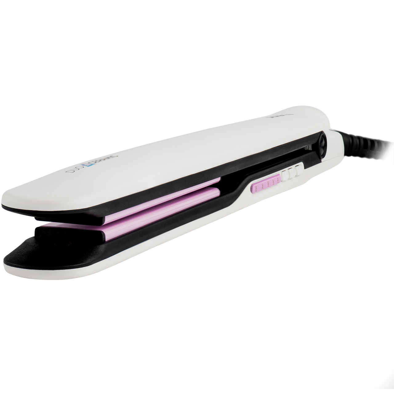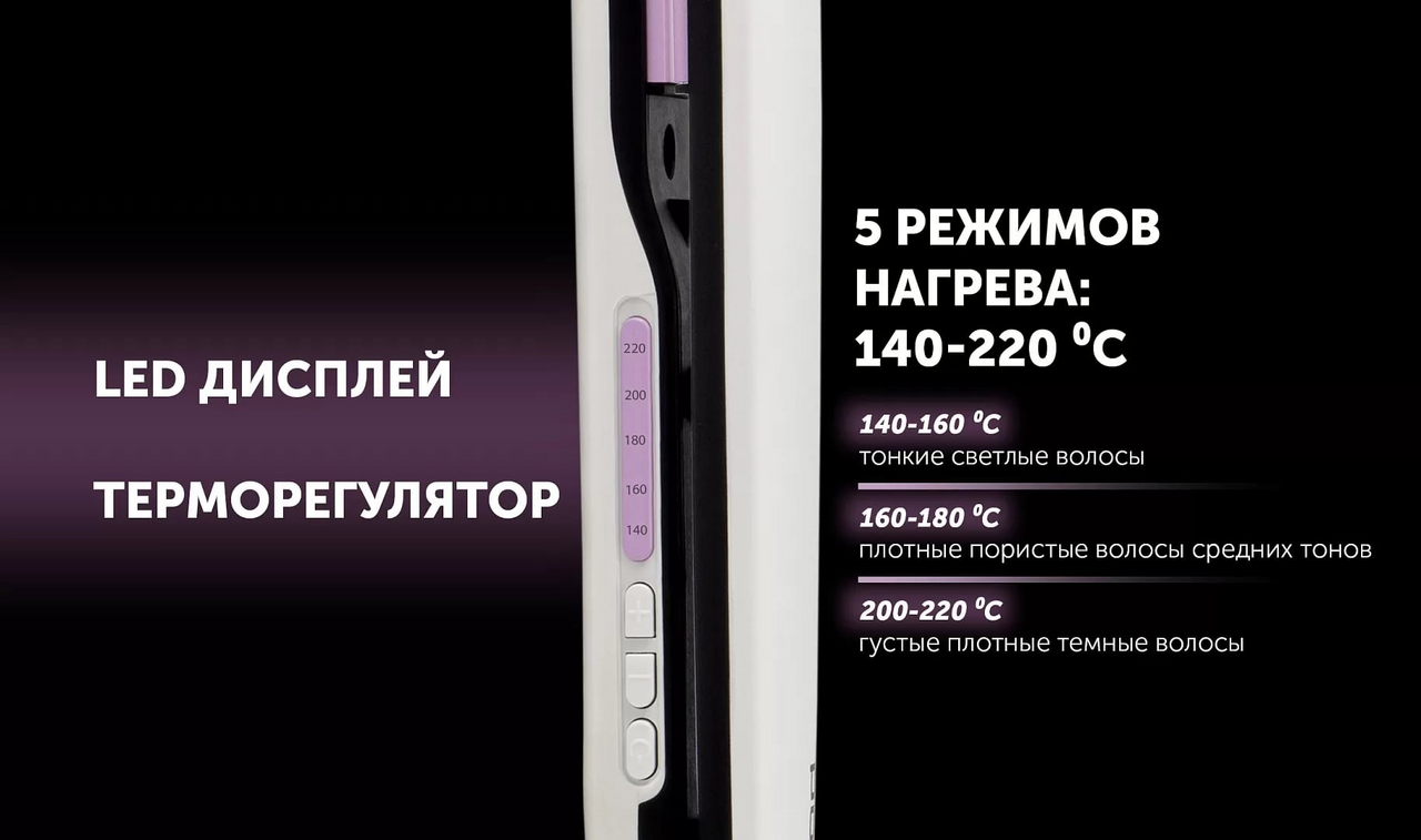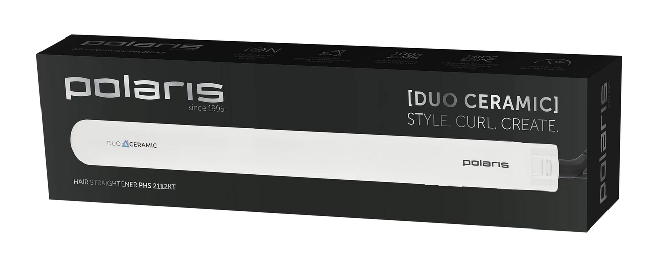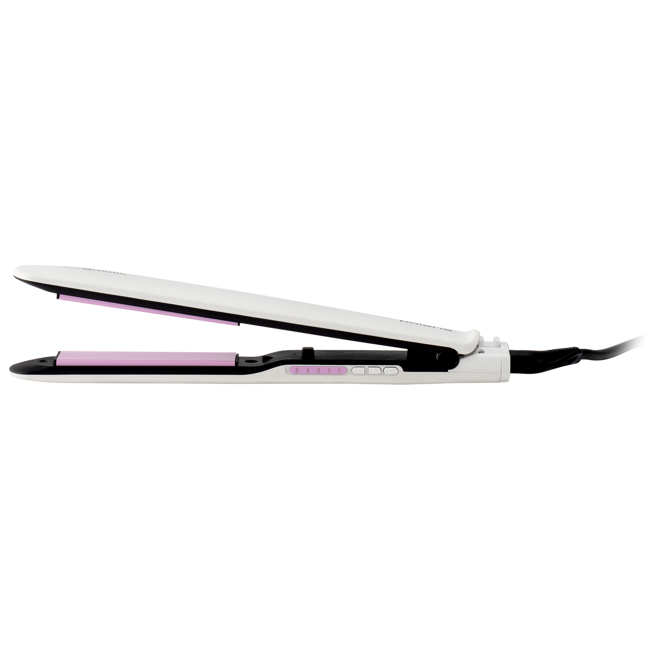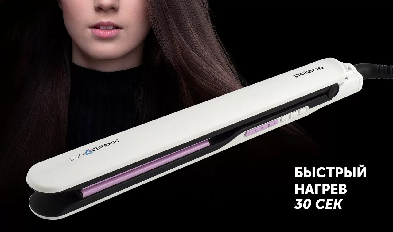 Ультратонкий дизайн корпуса. Технология покрытия пластин DuoCeramic защищает и сохраняет здоровый вид волос, обеспечивает легкое скольжение за счет керамического покрытия с двумя дополнительными слоями. Первый слой – для прочности и долговечности покрытия. Второй - для легкого скольжения и деликатного равномерного нагрева. Фиксация корпуса в закрытом положении. Шарнирное вращение шнура на 360С. Петелька для подвешивания. Защита от перегрева. Автоотключение через 60 минут.