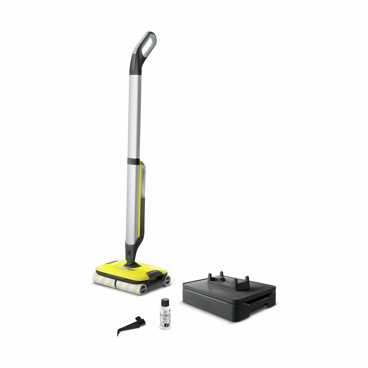 Электрошвабра Karcher Cordless FC 7 позволит вам сразу перейти к влажной уборке, минуя необходимость пользоваться пылесосом. Благодаря продуманной технологии четырех встречно вращающихся роликовых щеток данная модель легко и быстро удаляет различные загрязнения с любых напольных покрытий. Режим Boost отлично справляется с самой стойкой грязью, а специальный фильтр без труда собирает шерсть животных и длинные волосы. При этом Karcher Cordless FC 7 тратит на процесс совсем значительно меньше времени, чем обычные пылесосы. При этом вы получаете максимально качественную и тщательную уборку. В комплект поставки входят универсальное чистящее средство (500 мл), средство для чистки камня (30 мл) и дополнительный комплект щеток для каменных полов, что позволяет сразу же произвести генеральную уборку во всей квартире. Одного заряда мощного аккумулятора достаточно для 45 минут работы аппарата, что соответствует уборке до 175 кв. м твердых напольных покрытий (в т. ч. плиточных). Светодиоды, встроенные в щеточную головку данной модели, обеспечивают хорошее освещение темных участков пола (в углах, нишах и т. п.) для их тщательной очистки. Расход воды и скорость вращения автоматически увлажняющих щеток допускают регулировку (предусмотрены два режима уборки), а отдельные бачки для чистой и грязной воды исключают необходимость в переноске ведра с водой. Комплектация и оснащение: — регулировка скорости вращения щеток и расхода воды; — система двух резервуаров; — две пары универсальных роликовых щето�� (серые); — две пары роликовых щеток для каменных покрытий; — чистящее средство: универсальное средство для уборки полов RM 536, 500 мл, средство для очистки каменных полов RM 537, 30 мл; — щеточная головка со встроенными светодиодами; — базовая станция с функцией очистки; — зарядное устройство; — щетки.