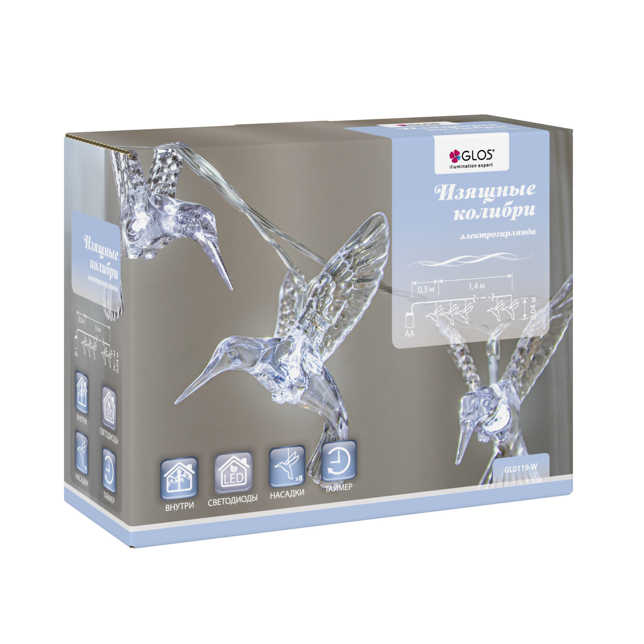 Гирлянда Glos Колибри 8Led холодный белый, 1.4м