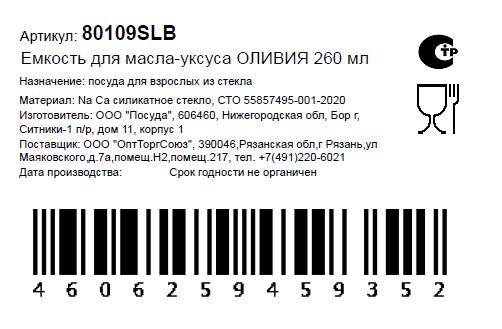 - Тип упаковки Без упаковки