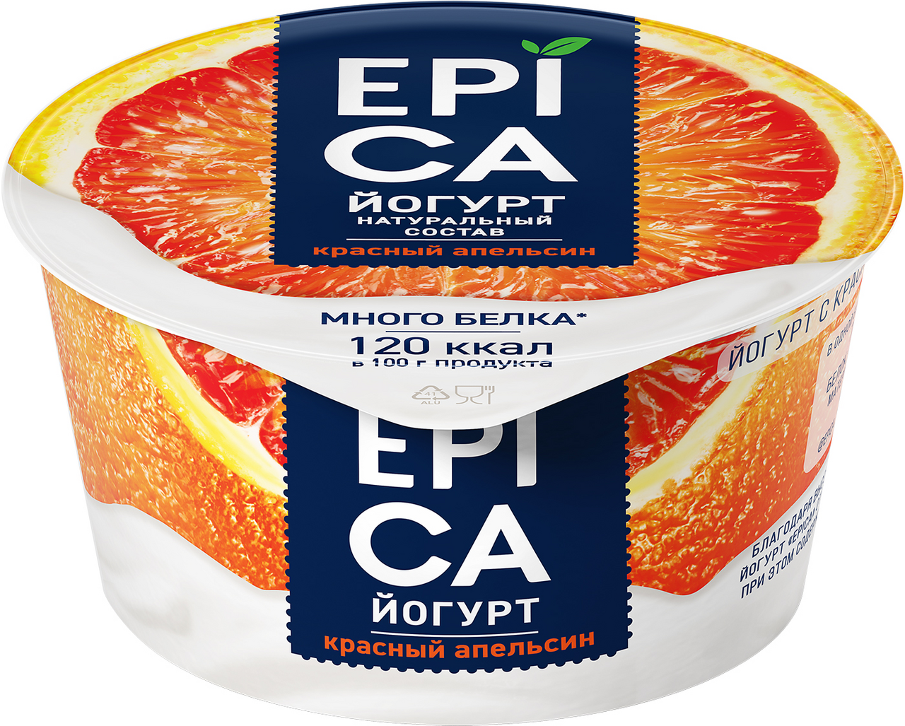 Йогурт Epica натуральный красный апельсин 4.8%, 130 г