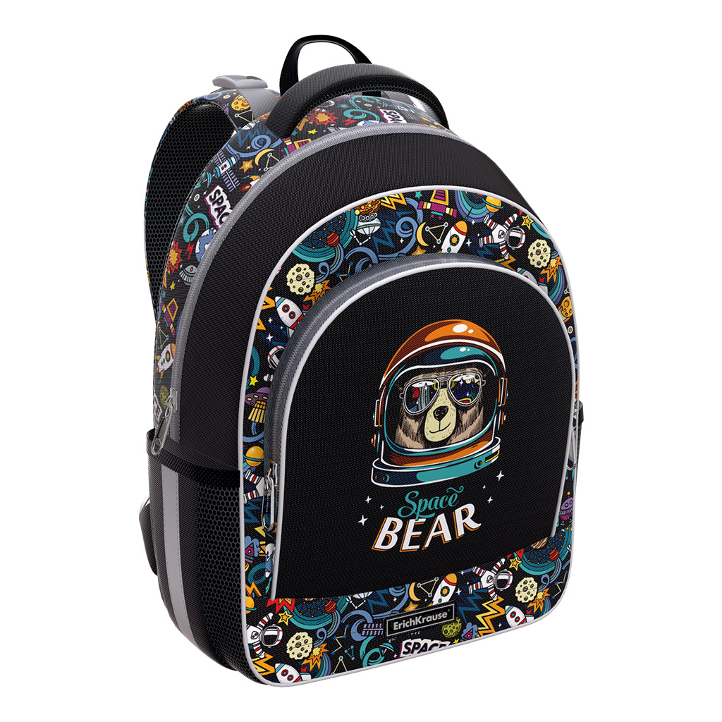 Классический каркасный рюкзак с эргономичной спинкой, 28x39x14 см. Вес 520 г делает его одним из самых легких в своей категории (вес указан без дополнительной фурнитуры). Материал: износо- морозостойкий водоотталкивающий 100% полиэстер. Полезный объем - 15 литров. Внутри вместительное отделение с фиксатором для учебников формата А4+, мини-органайзером и карманом на молнии. Снаружи большой передний карман на молнии и два боковых кармана на резинке. На��ежные молнии с мягким ходом оснащены бегунками с логотипом ErichKrause. Конструкция ErgoLineSystem из эргономических подушечек снижает нагрузку на позвоночник. Спинка и внутренняя сторона лямок с противооткидами выполнены из дышащей сетки AirMesh, структура волокон обеспечивает вентиляцию и защиту от трения. Мягкие лямки с противооткидами равномерно распределяют вес и не давят на плечи. Дно, усиленное внутренней откидывающейся вставкой, обеспечивает дополнительную устойчивость, а пластиковые ножки защищают от загрязнений и влаги.