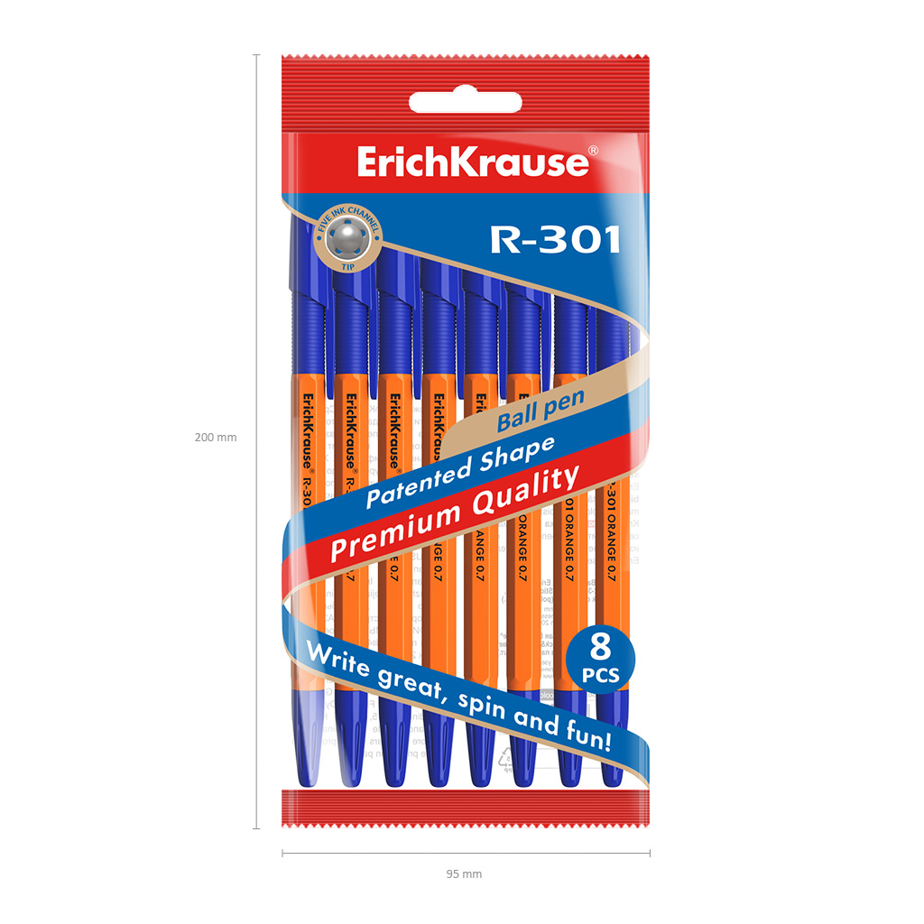 Классическая шариковая ручка Stick&Grip со стандартным типом пишущего узла и заменяемым стержнем. Ручка имеет непрозрачный оранжевый шестигранный корпус с удобной профилированной грип-зоной из резины и вентилируемый колпачок. Цвет колпачка, грип-зоны и заглушки соответствует цвету чернил. 5-канальный пишущий узел с диаметром шарика 0.7 мм в сочетании с быстросохнущими чернилами обеспечивает мягкое и быстрое письмо. Длина непрерывной линии составляет 2000 м при толщине 0.35 мм, что является одним из лучших показателей в своей категории. Модель R-301 Orange 0.7 Stick&Grip имеет узнаваемую запатентованную форму и стала одним из бестселлеров в ассортименте шариковых ручек ErichKrause более чем в пятидесяти странах мира.