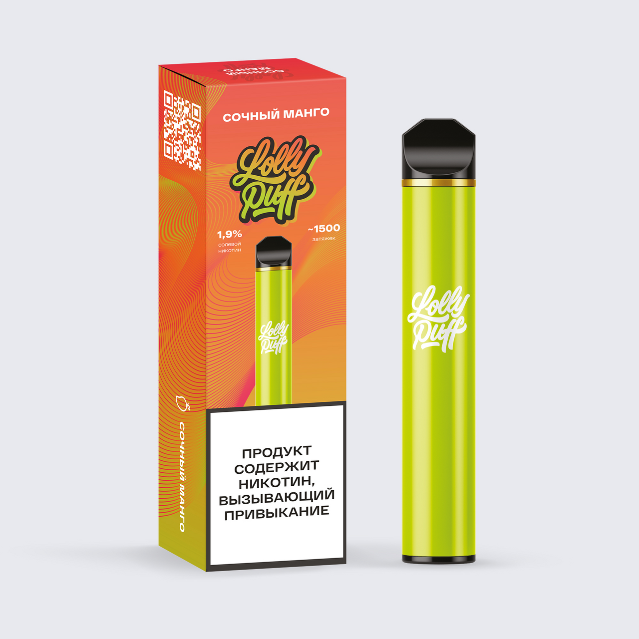 Одноразовые электронные сигареты Lolly Puff 1500 со вкусом Манго – новинка от бренда Lolly Puff. Аккумулятор емкостью на 1000 mAh с возможностью подзарядки через разъем USB Type-C и бак с 5.5 мл жидкости (Солевой никотин крепостью 2% (20 мг/мл)) позволяют совершить до 1500 затяжек. Хватит примерно на 3 дней. А сетчатый испаритель Mesh coil, защитит от появления привкуса гари при парении.