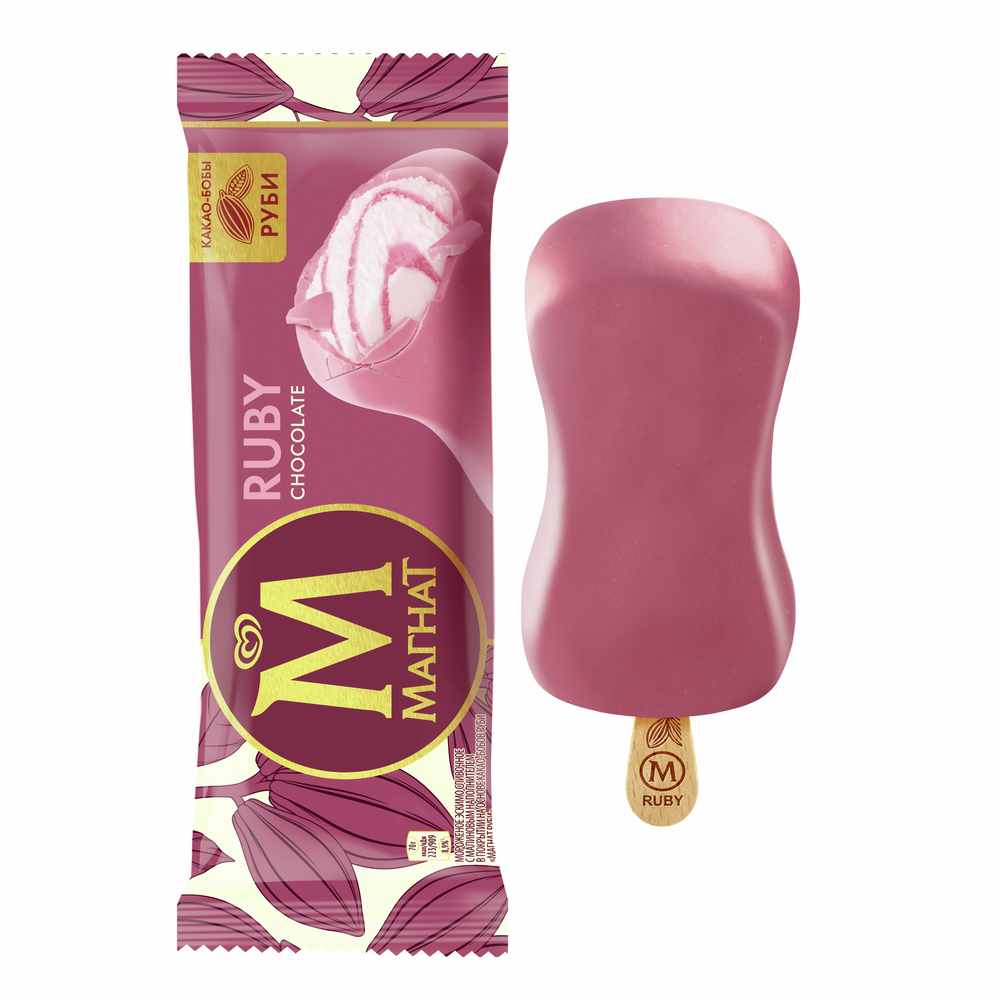 Малиновое мороженое Магнат Руби — это сливочное эскимо с белым шоколадом, элегантным малиновым соусом, который подчеркивает фруктово-ягодную кислинку уникального шоколада из какао-бобов Ruby.Руби называют 4-м видом шоколада и это удивительное открытие за последние 80 лет после темного, молочного и белого шоколада. Он восхищает своим натуральным рубиновым цветом и природной фруктово-ягодной кислинкой, которую придают ему какао-бобы Руби.Уникальный шоколад из какао-бобов Руби изготавливается без добавления красителей и фруктовых ароматизаторов.Сливочное эскимо Магнат Руби– это идеальный баланс премиального шоколада и натурального мороженого.Именно бескомпромиссный подход к выбору настоящего шоколада и исключительный вкусовые характеристики делают эскимо Магнат особенным.Магнат по праву является экспертом в шоколаде. В коллекции бренда собраны все виды шоколада по-настоящему высокого качества.Магнат не только разбирается в особенностях настоящего шоколада, Магнат его исследует: на базе разработок компании-производителя Unilever, установлена лаборатория по замеру уровня хруста шоколада Магнат. Характерный хруст – вот, что отличает настоящий шоколад Магнат.Магнат постоянно в поиске новых вкусовых сочетаний, так как призван удивлять и открывать новые грани вкусов и удовольствий для своих потребителей.Магнат верит, что день без удовольствия – день, прожитый зря. Поэтому мороженое Магнат создано специально для искателей удовольствия. Для тех, кто верит, что удовольствие делает жизнь значимой. Магнат. Твои правила удовольствия.