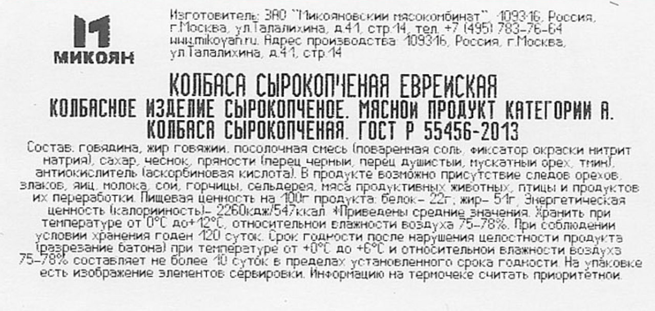 Сырокопченая колбаса высшего сорта ОХОТНЫЙ РЯД Еврейская Gourmet Collection – это сочетание благородного аромата, пряного вкуса чеснока и разнообразных специй: душистого перца, мускатного ореха, тмина. Яркий, необычный и оригинальный деликатес украсит собой любой стол. Для приготовления этой колбасы используется только охлажденная говядина высочайшего качества.