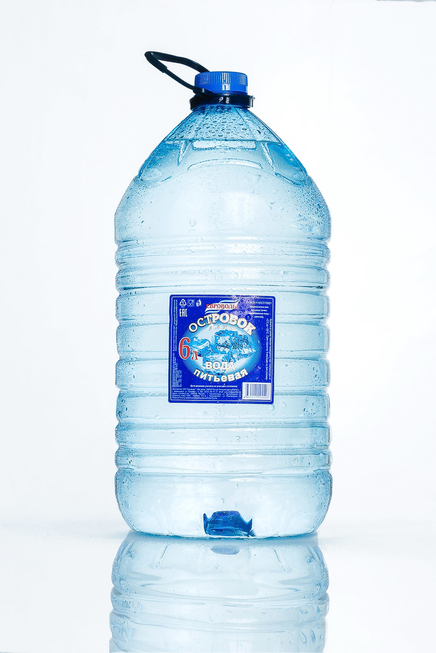 Вода питьевая Островок лайт расфасованная в ёмкости по 6 литров добывается из артезианской скважины № 4009 расположенной на окраине г. Калининграда на ул. Пригородной с глубины 112м.