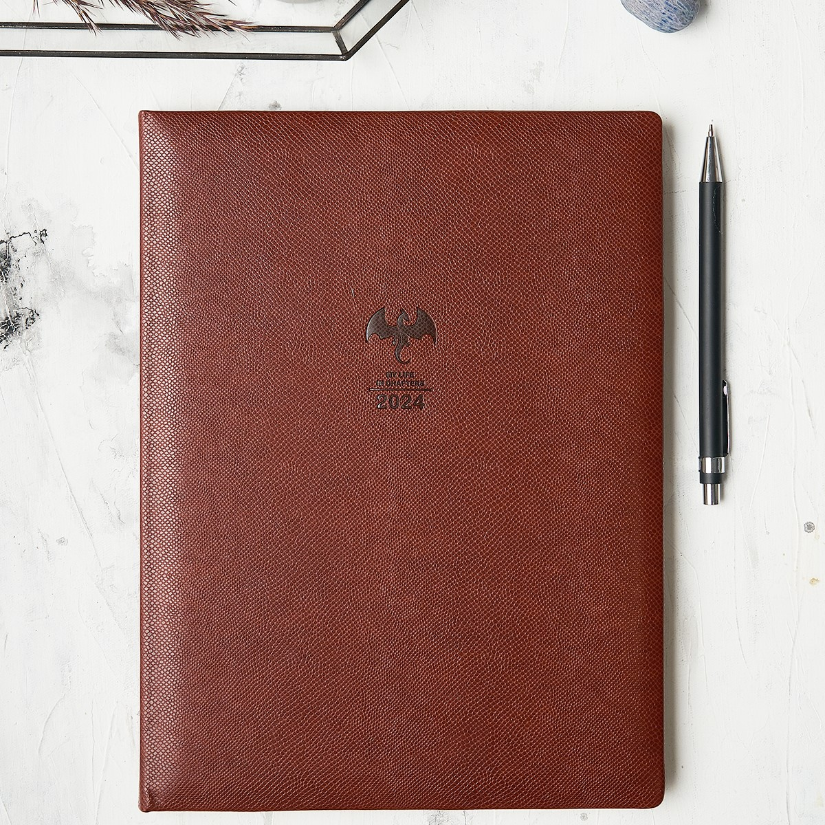 Ежедневник датированный Infolio Dragon 19 x 25см, 176л - удобный датированный на 2024 год ежедневник А5 формата (140?200 мм) будет не только незаменимым помощником в ведении дел, но и станет стильным аксессуаром, отражающим индивидуальность владельца.Твердая обложка из приятной искусственной кожи с декоративным тиснением имеет удобный кармашек для мелочей на нахзаце и скругленные уголки, которые не позволят порвать подкладку сумки. Плотная резинка не позволит растрепаться страницам блока, а благодаря крепкому ниткошвейному скреплению ежедневник верно прослужит весь год.Датированный внутренний блок в линейку на 176 листов (352 страницы) — из высококачественной бумаги цвета слоновой кости плотностью 70 г/м2 со скругленными уголками. Информационный блок ежедневника включает в себя: титульный лист, календари на 2024—2025 гг., раздел планы на год, развороты для заметок в начале и конце блока, планер перед каждым месяцем.В ежедневнике также имеются две удобные атласные закладки, которые помогут быстро найти нужные развороты.