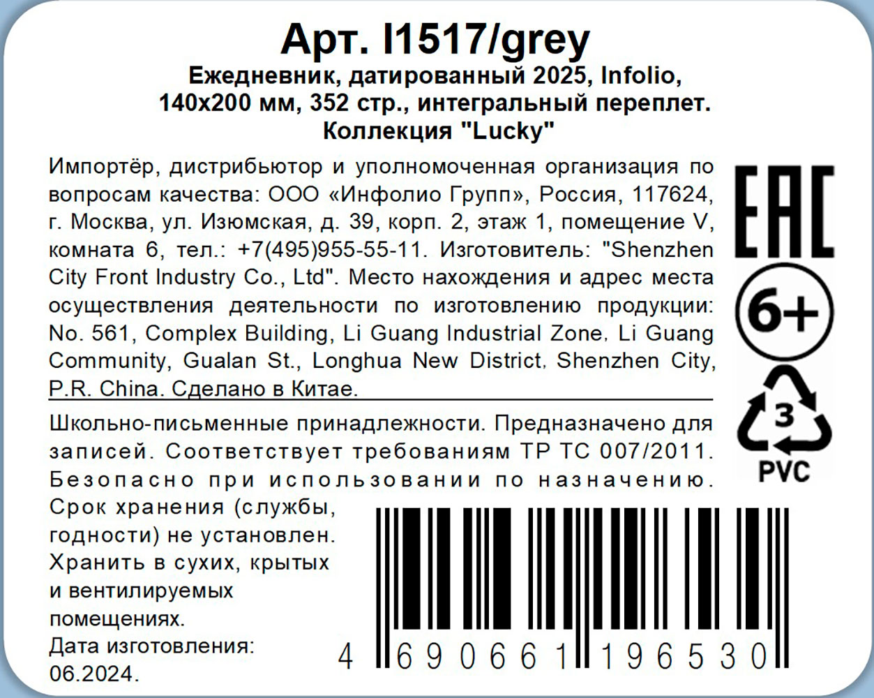 Ежедневник датированный Infolio Lucky серый А5, 176л