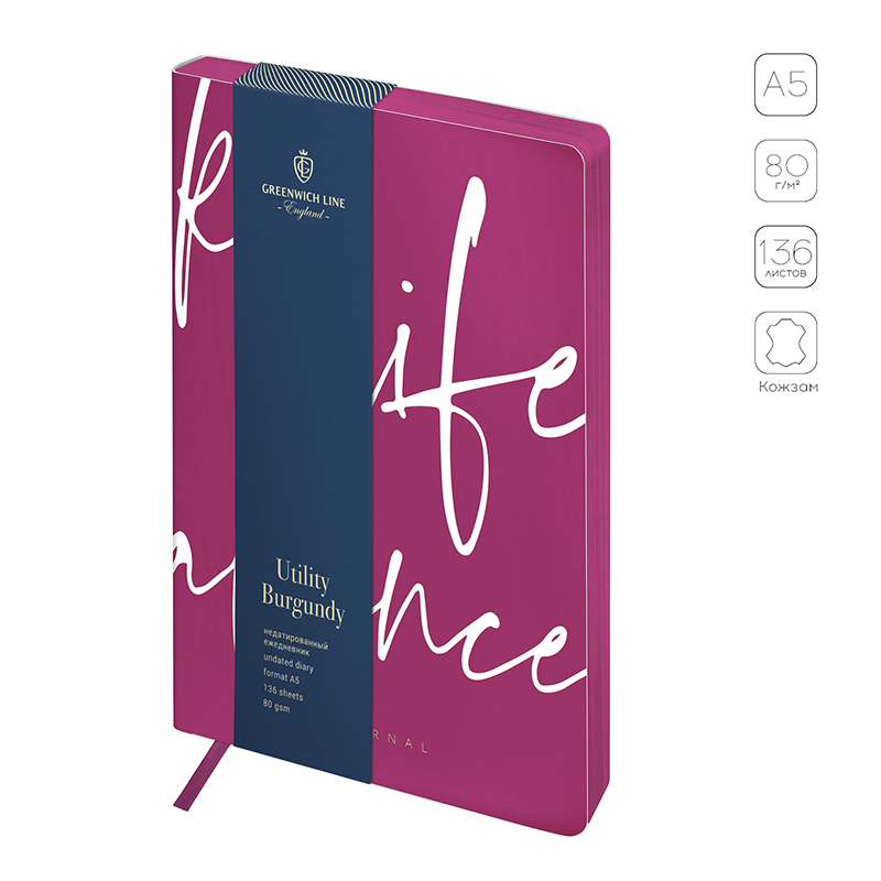 Ежедневник недатированный Greenwich Line A5, 136 листов, кожзам, Utility, Burgundy