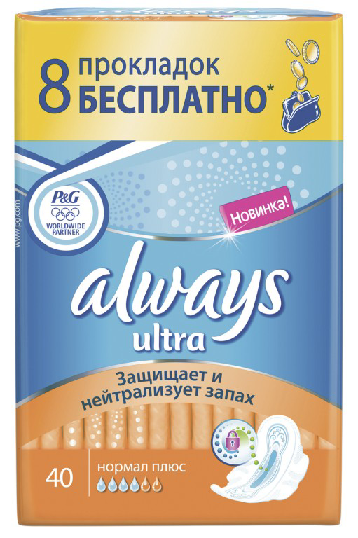 Прокладки Always Ultra Normal Plus – надежная защита от протеканий, а соответственно и 100% уверенность в течение всего дня.Высококачественные прокладки наделены новым волнистым уникальным верхним слоем с 3D текстурой, благодаря чему Always Ultra Normal Plus практически не контактируют с кожей и не прилипают.Данная продукция одобрена дерматологами. Она обрела репутацию надежного и приятного для кожи средства гигиены.Невероятно тонкие, с приятной сетчатой поверхностью Always Ultra Normal Plus удовлетворят запросы каждого пользователя.Доверьтесь высокому качеству Always Ultra и навсегда забудьте о протеканиях, неприятных запахах и ощущениях.