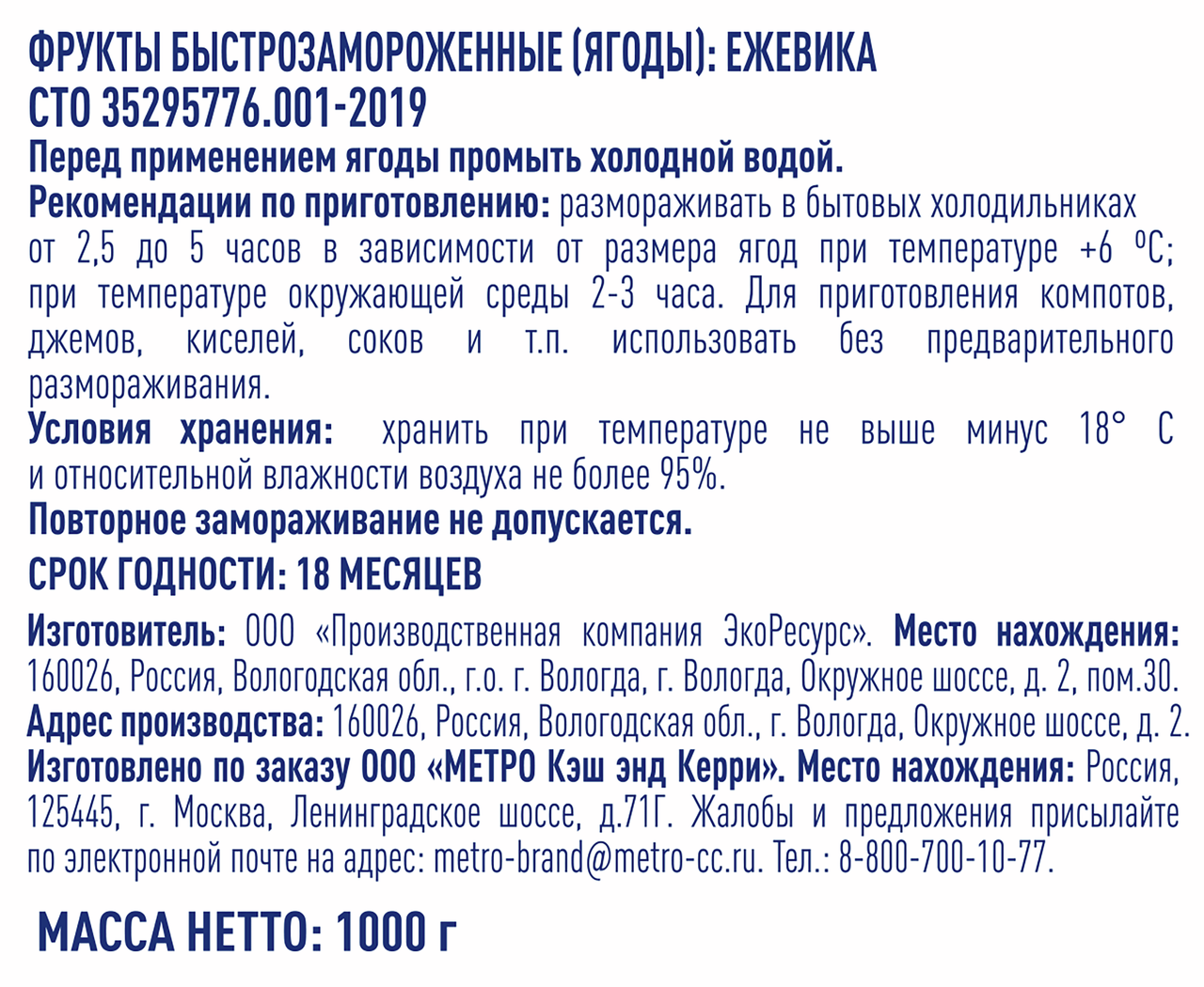 Рекомендации по приготовлению: размораживать в бытовых холодильниках от 2,5 до 5 часов в зависимости от размера ягод при температуре +6 С; при температуре окружающей среды 2-3 часа. Для приготовления компотов, джемов, киселей, соков и т.п. использовать без предварительного размораживания.