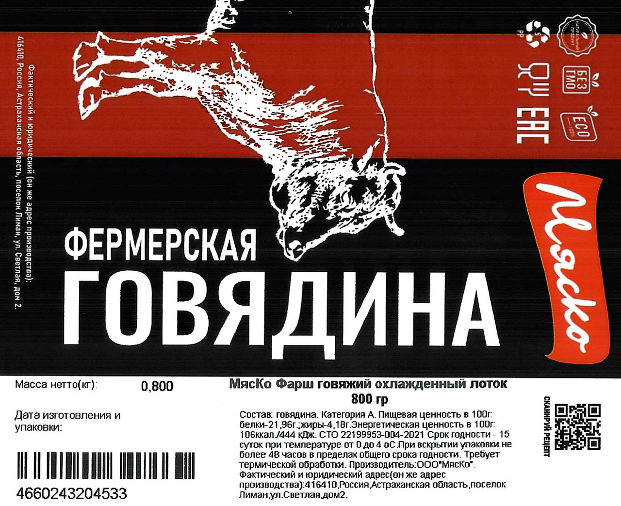Фарш говяжий Мяско Халяль охлажденный, 800г