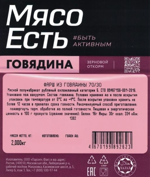Фарш говяжий Мясо есть! 70/30 охлажденный, 2кг