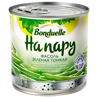Фасоль Бондюэль зеленая на пару – это новый продукт от известного производителя консервированных овощей. В его состав входят отборные тонкие стручки молодой фасоли. Благодаря обработке овощей на пару, фасоль сохраняет свой вкус, цвет, и, главное, витамины. Специальная инновационная технология приготовления позволяет донести до потребителя все полезные качества продукта. Консервы Бондюэль просты в использовании и употреблении: всего лишь откройте банку и наслаждайтесь вкусом свежих овощей. За счёт исключительно натуральных ингредиентов, фасоль имеет вкус домашней еды.
