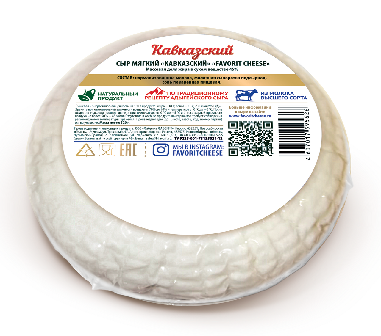 Сыр Favorit Cheese Кавказский 45%, 320г