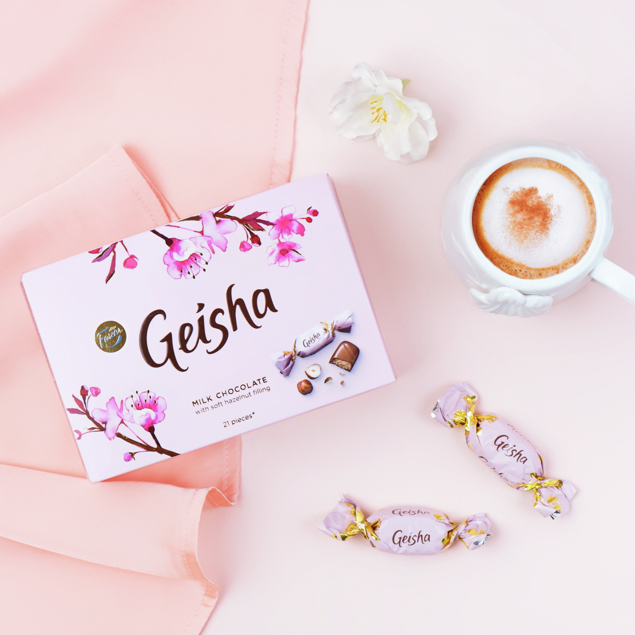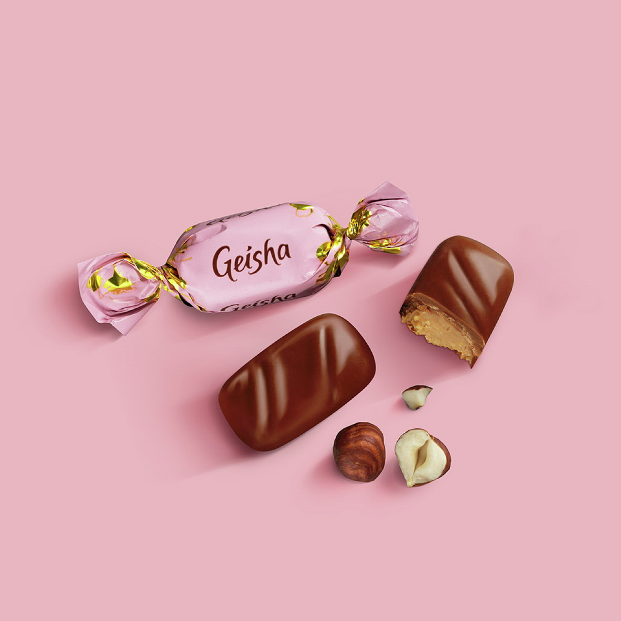 Конфеты Geisha от Fazer - благородное сочетание нежного молочного шоколада и ореховой начинки. История шоколада Geisha началась в 1962 году, когда шоколатье Петер Фацер соединил превосходный шоколад с хрустящей начинкой из лесного ореха. Новый десерт оформили в изящную упаковку с японскими мотивами и назвали Geisha. Название символизирует утонченность и гармоничный романтичный образ, который идеально сочетается с изысканным молочным шоколадом Geisha с шелковисто-ореховой начинкой.