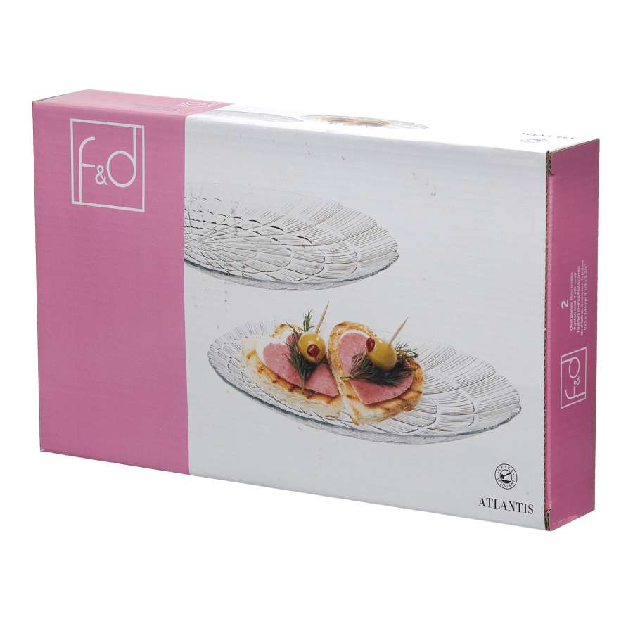 Тарелка F&D Atlantis, 2 шт., 14,7 x 24см - отличное решение для презентации фруктовой нарезки или фруктов целиком. Она выполнена из стекла, что обеспечивает повышенные технические характеристики. Материал не требует особого ухода, изысканно смотрится в любом интерьере и хорошо пропускает свет. Он надежно противостоит высоким температурам, обладает отменной ударопрочностью. Посуда удачно вписывается в общую атмосферу на кухне, в гостиной или комнате. Она станет неизменным атрибутом обеденного или праздничного стола. Компактные размеры позволяют без труда переносить и хранить принадлежность в кухонном шкафу. Для ухода применяют влажную ткань или губку. Не следует использовать абразивные чистящие средства, способные поцарапать поверхность изделия.