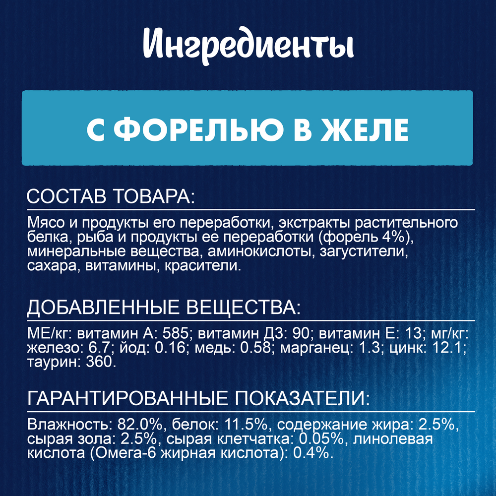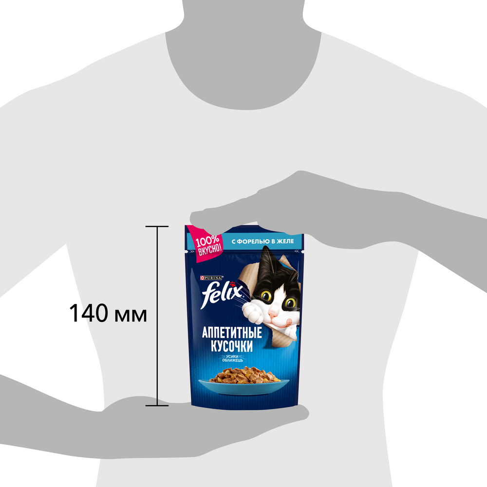 Корм влажный Felix Аппетитные кусочки желе для взрослых кошек с форелью, 85г
