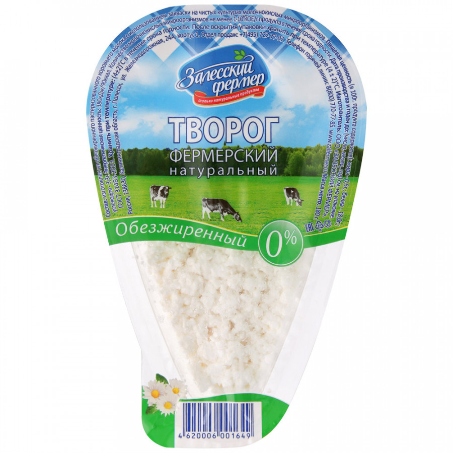 Творог Залесский фермер натуральный обезжиренный 0% 180 г