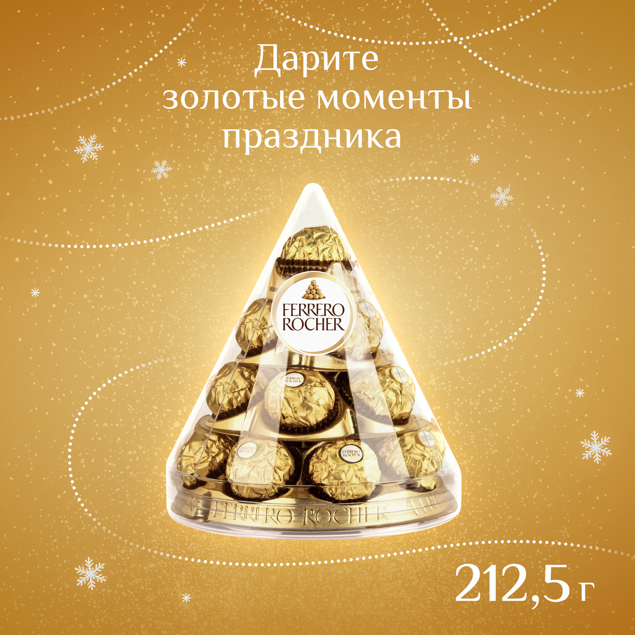 Набор конфет Ferrero Rocher Пирамида хрустящие из молочного шоколада, 213г