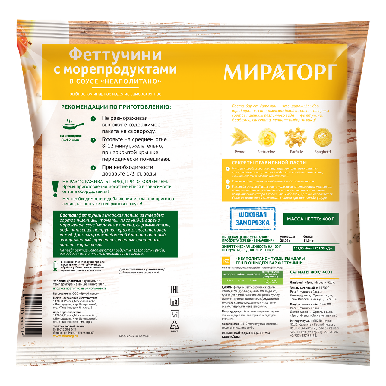 Феттучини Мираторг с морепродуктами в соусе Неаполитано замороженные, 400г