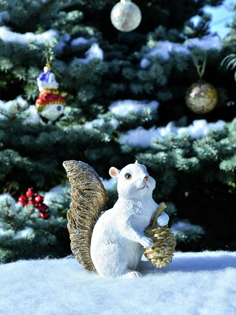 Новогодняя фигурка Decobraz, белочка с шишкой наполнит ваш дом уютом и создаст праздничную новогоднюю атмосферу. Отличный подарок на Новый год , прекрасно встанет у новогодней елки. Фигурку можно использовать как элемент декора дома, так и на улице. Фигура легко переносит любые атмосферные воздействия в виде дождя, града, снега, температуру широкого диапазона: от - 50 до + 180 градусов, не реагирует на высокую или низкую влажность, устойчива к солнечному излучению. К несомненным достоинствам можно отнести его экологическую безопасность.