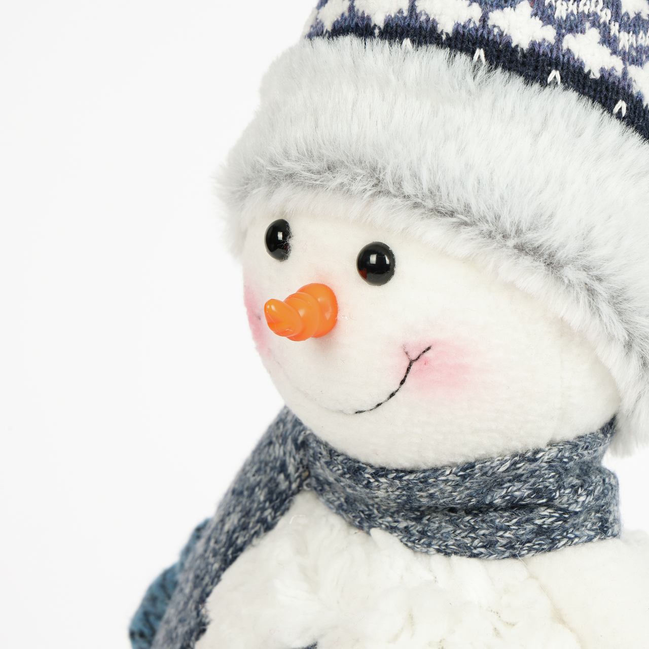 Фигура Christmasdeluxe Снеговик в колпаке голубой, 20 x 11 x 66см