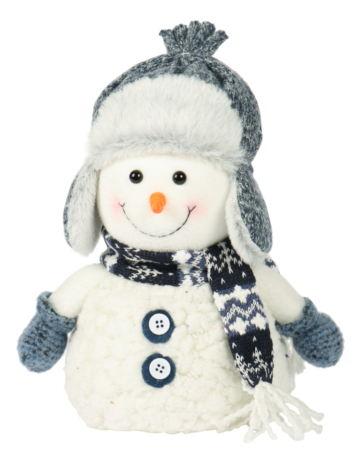 Фигура Christmasdeluxe Снеговик в шапке-ушанке голубой, 24 x 11 x 25см